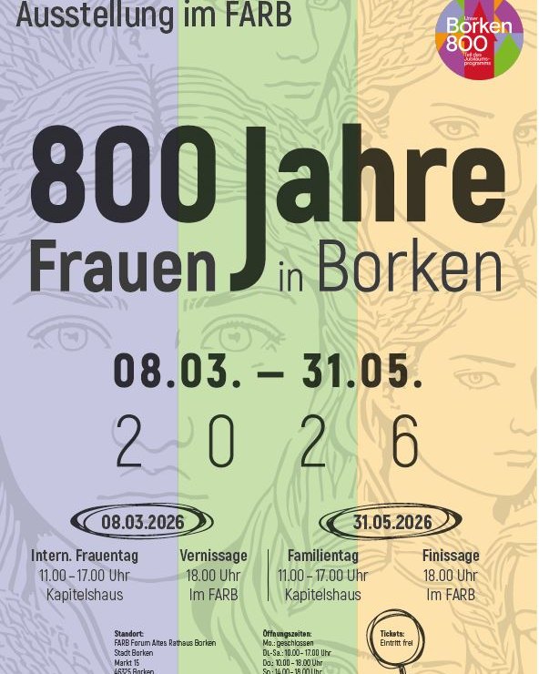 Die Ausstellung würdigt Frauen, die über 800 Jahre hinweg die Geschichte Borkens mitgestaltet haben – von der Kluchtfrau bis zur Unternehmerin 😊